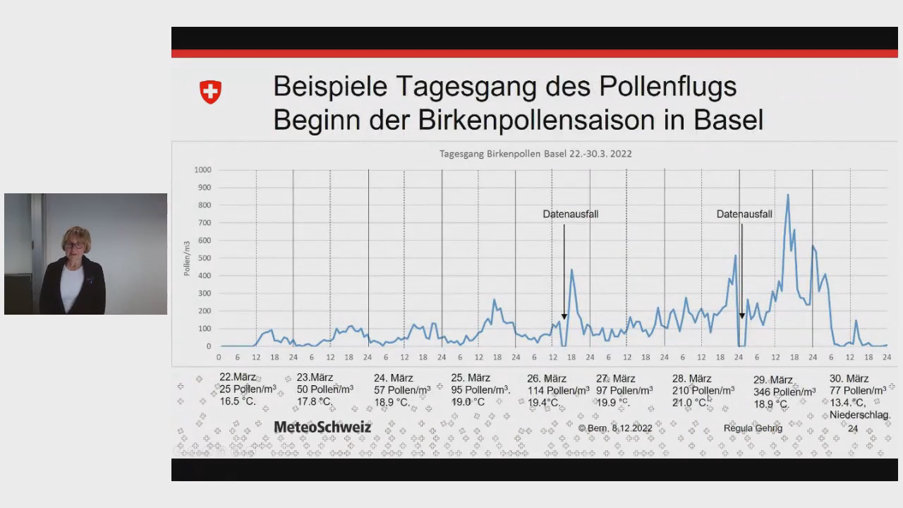 Pollenflug und Blühbeginn von Pflanzen ändern sich jedes Jahr. Temperatur, Feuchtigkeit und Niederschlag haben darauf einen entscheidenden Einfluss. Die klimatischen Veränderungen führen zudem zu einer zeitlichen Verschiebung oder Verlängerung der Pollensaison, neue Pollenallergene stossen in die Schweiz. Durch regionale Pollenflug Messsysteme können solche Veränderungen erfasst werden, neuerdings auch in Echtzeit. Im letzten AfA in diesem Jahr möchten wir Ihnen einen Überblick zu den neuesten Entwicklungen der Pollenmessung geben und was uns in Zukunft beim Pollenflug erwartet.